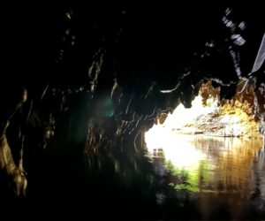 ゴムボートみたいな船に乗って土ボタルが輝く洞窟を散策できます。