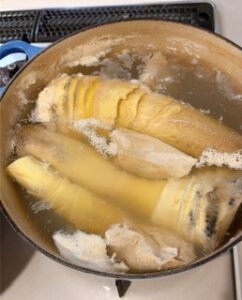 家に帰るとすぐに米ぬかで筍を茹でます。